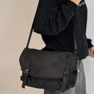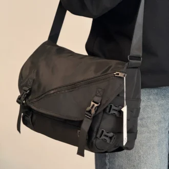 • استایل‌پذیری بالا: رنگ مشکی مات و طراحی زاویه‌دار باعث می‌شه کیف با انواع استایل‌های خیابانی، کژوال یا نیمه‌رسمی هماهنگ باشه.
