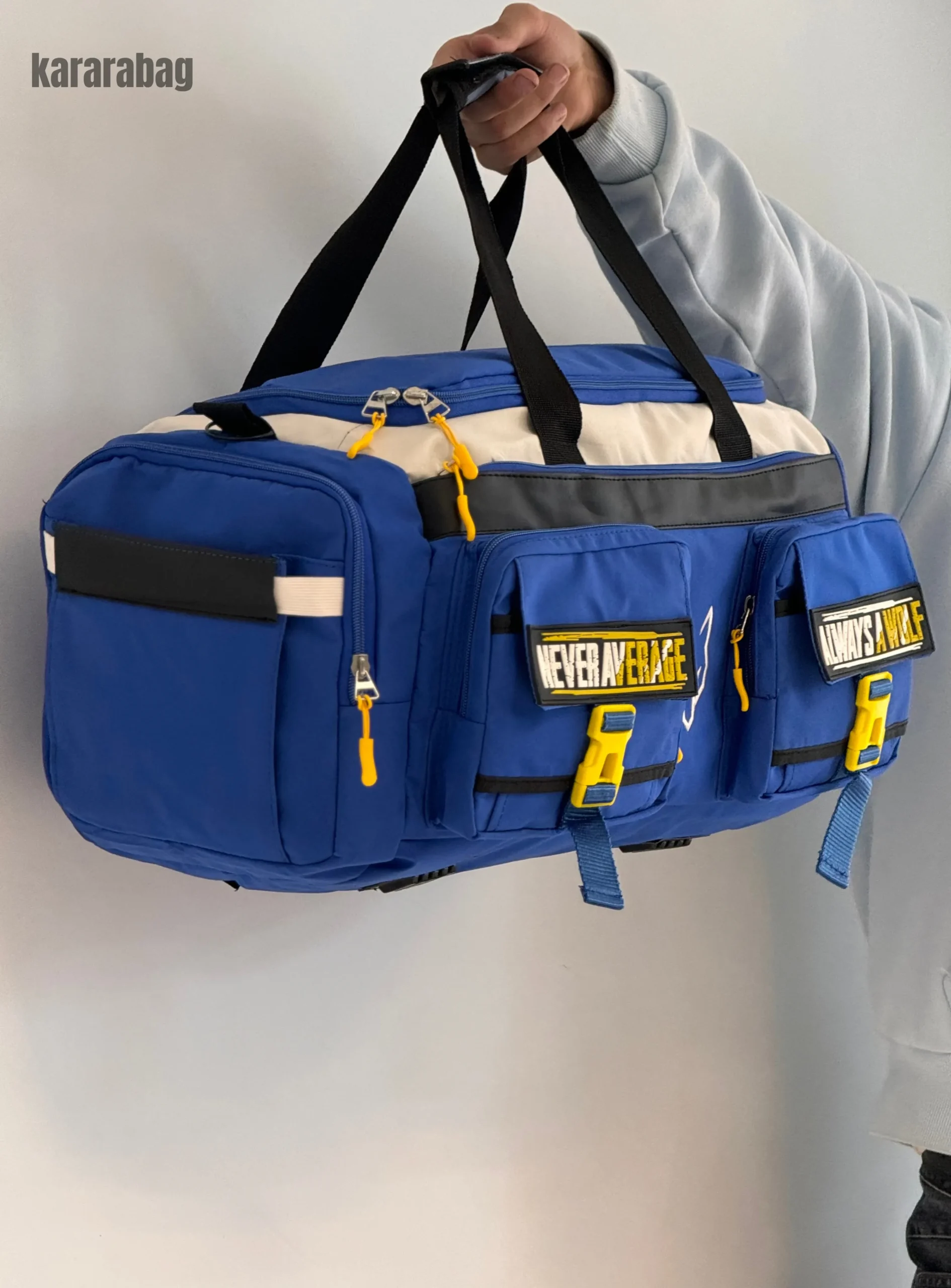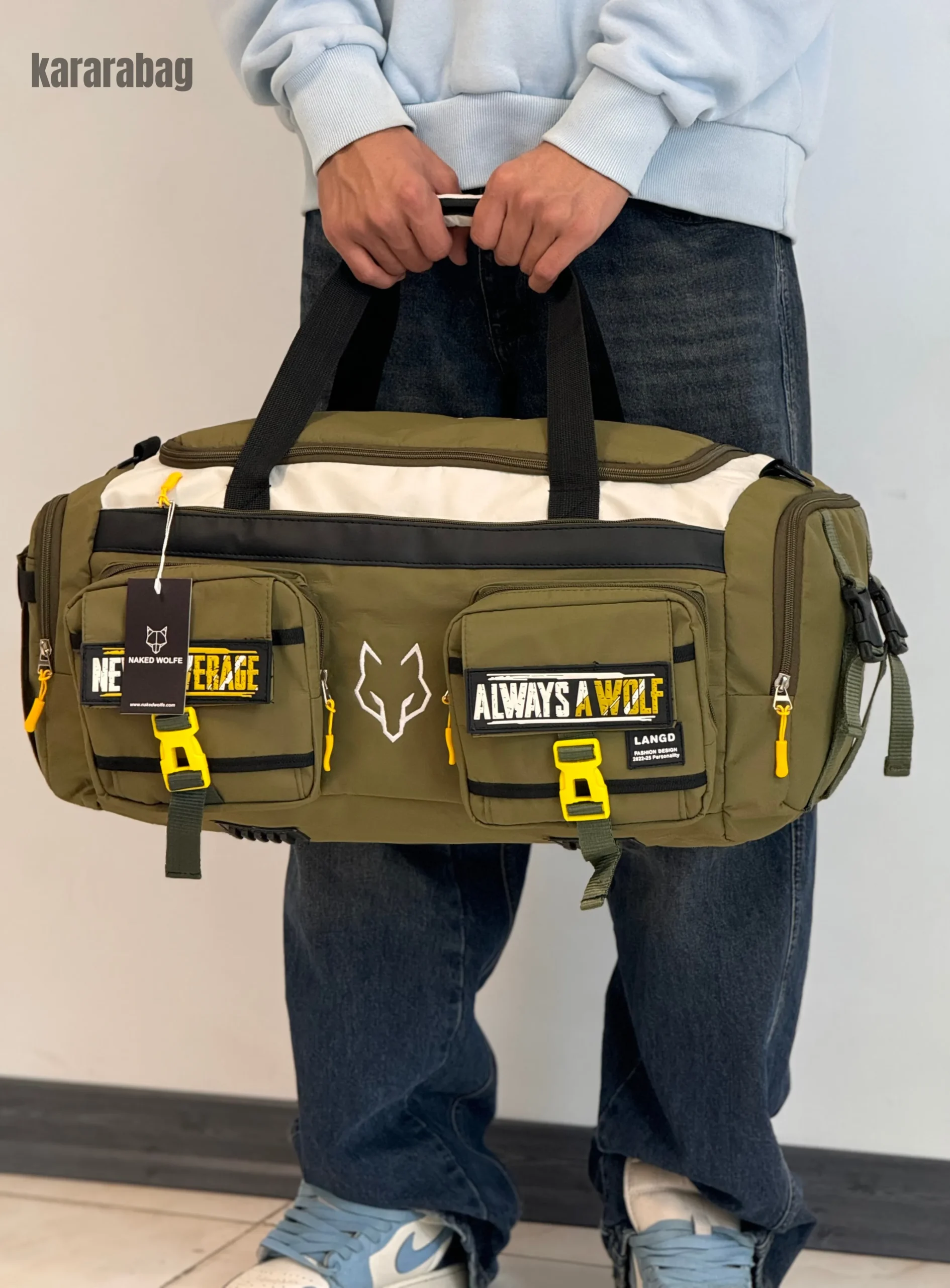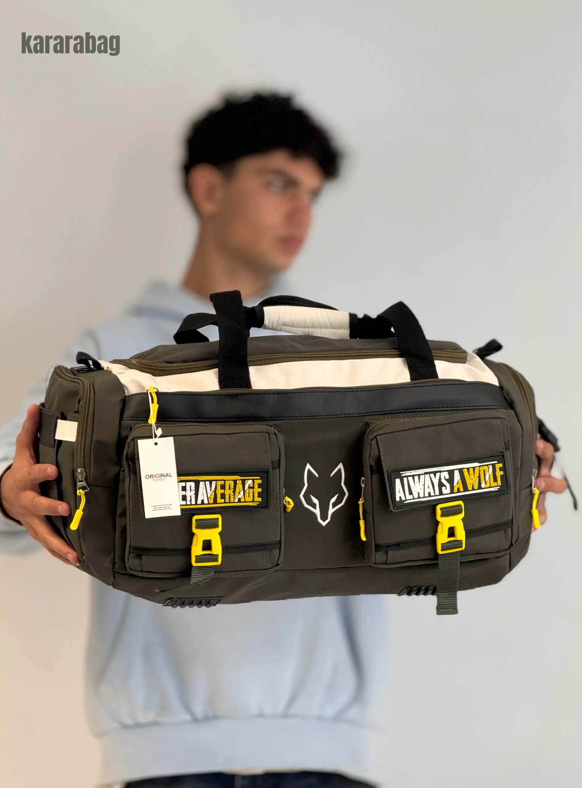 دو جیب بزرگ جلویی با نوشتههای انگیزشی “OVER AVERAGE” و “ALWAYS A WOLF”